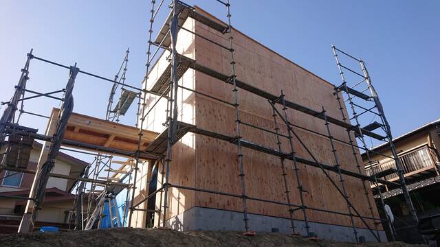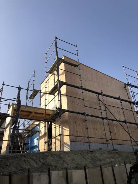 正面からは全く家の中が想像出来ないKADeLらしさ一杯の外観が、現時点でも一際目を惹きます。