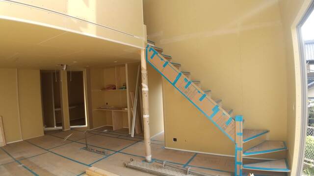 ここで大工さんは一度現場を離れ、各仕上げの業者さんが工事を引継ぎます。