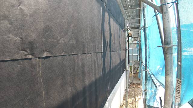 こちらはモルタルの下地になるもので、雨水の浸入を防ぐと同時に、家内部を適度な湿度に保ちます。