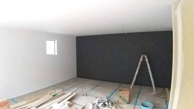 京田辺市A様邸は、大工工事完了後、クロス工事、外部左官工事が進み、