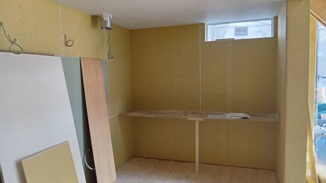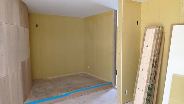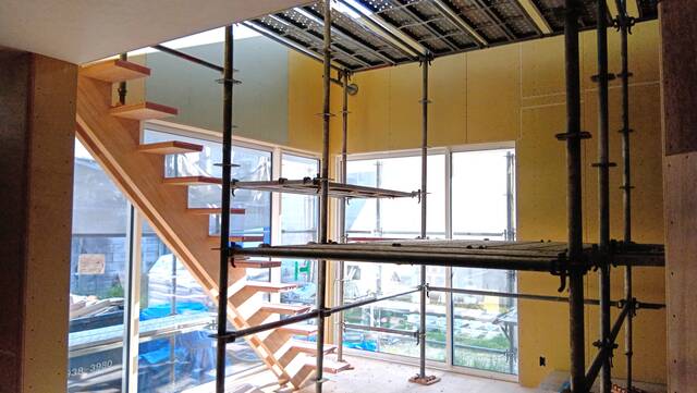 河南町H様邸はクロスの下地となる石膏ボード貼りが終わり、大工工事が完了しました。