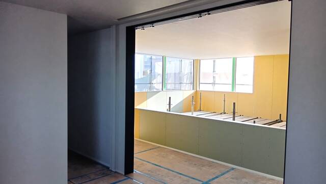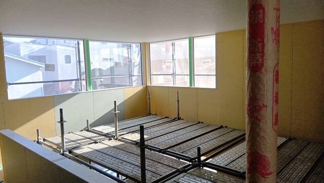 クロス貼りや内部塗装の仕上げ工事が進んでおります。