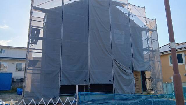外部は今週から外壁のモルタル塗りを行っております。