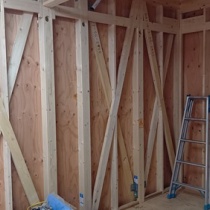 堺市H様事務所は、大工工事が終わり、来週から内装工事に入ります。 H様事務所は一般住宅ではないので、間取りが通常よりシンプルではありますが、 所々に施主と弊社のこだわりが見られるつくりとなっています。 外部は来週から吹付作業に入る予定で、今月末には ...